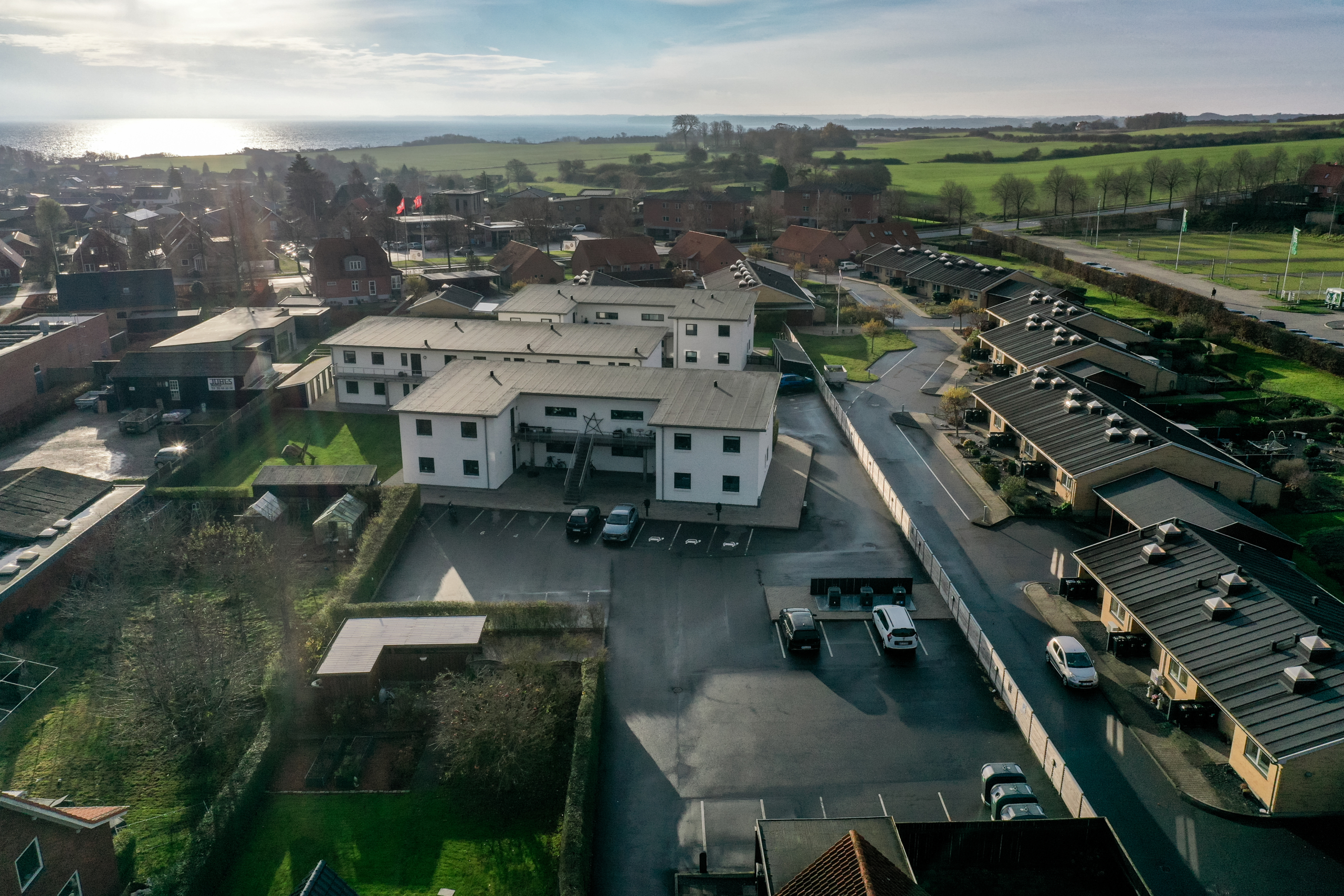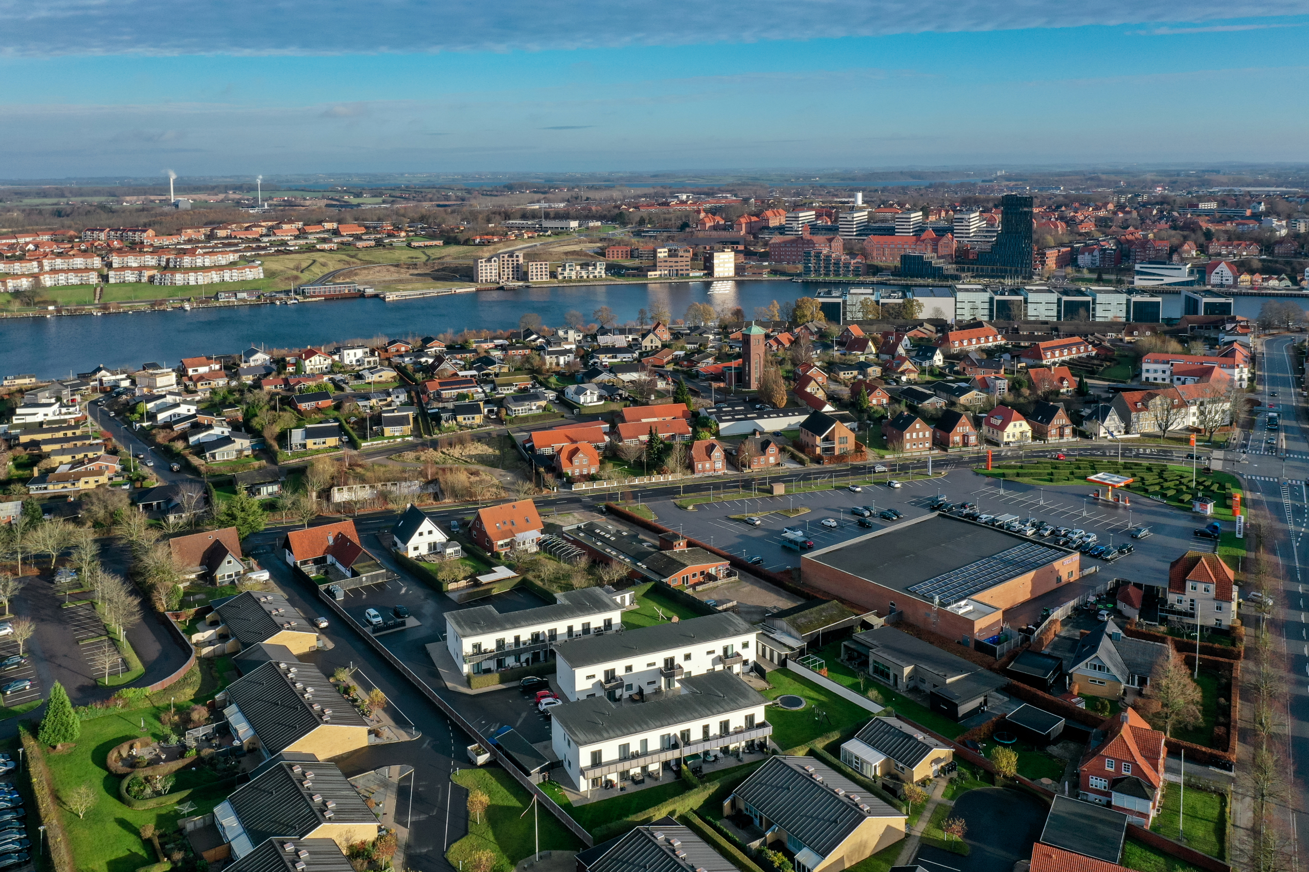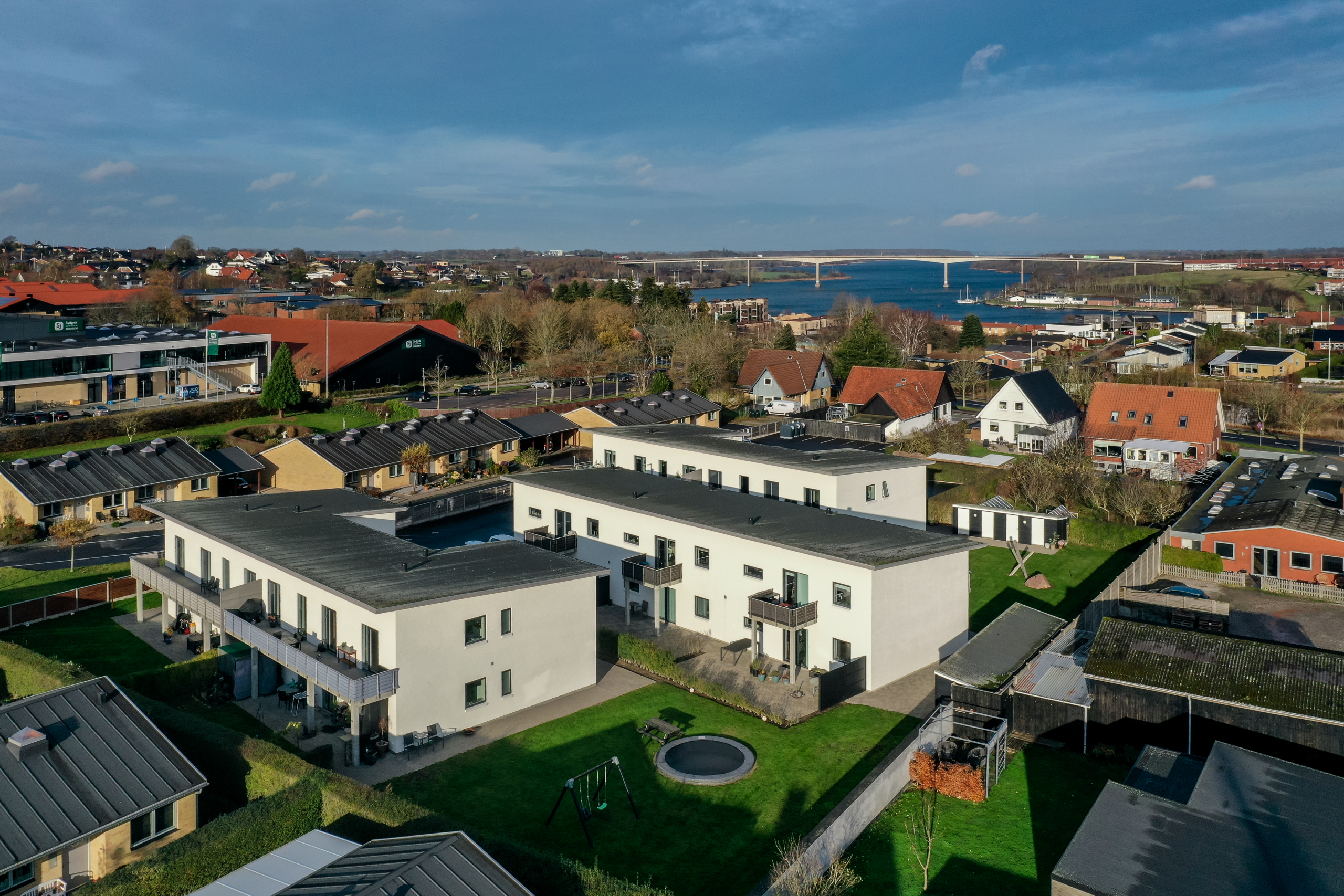 Bebyggelsen ligger ved Byens Havn, et attraktivt og familievenligt område i Sønderborg, hvor natur, rekreative områder og hverdagens gøremål mødes på kort afstand. Her er der ro til hverdagen og samtidig nem adgang til alt det, der gør livet praktisk og bekvemt.