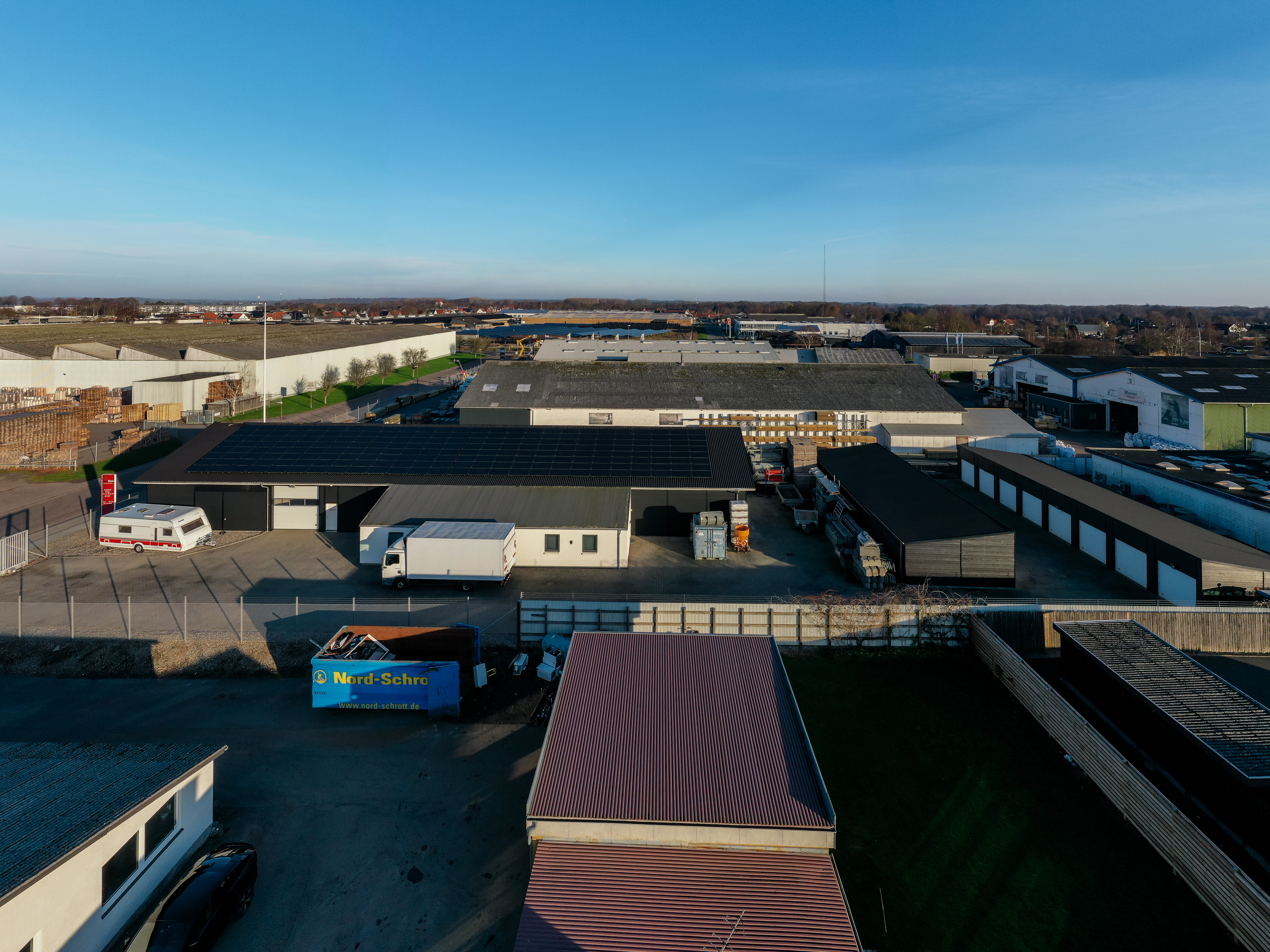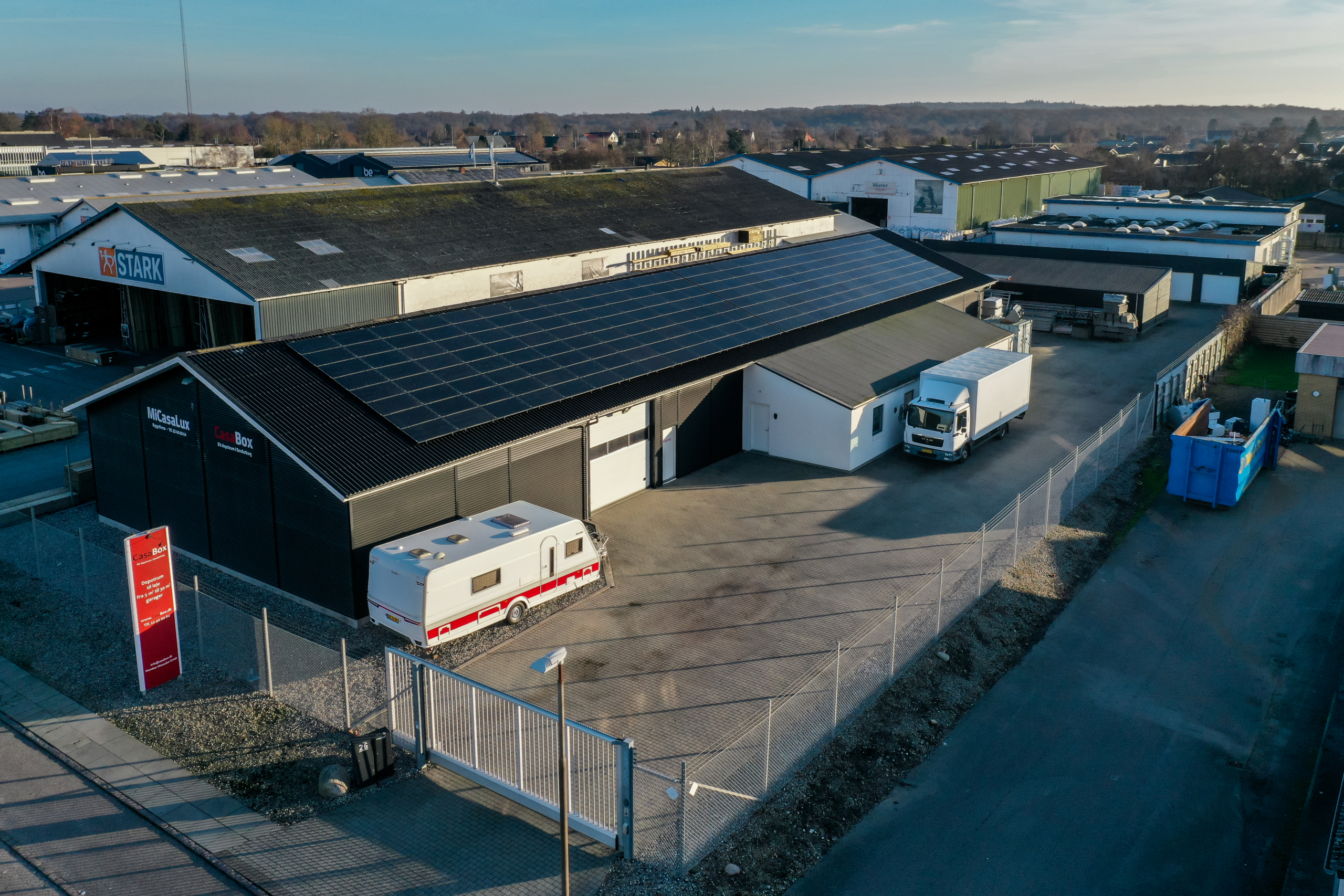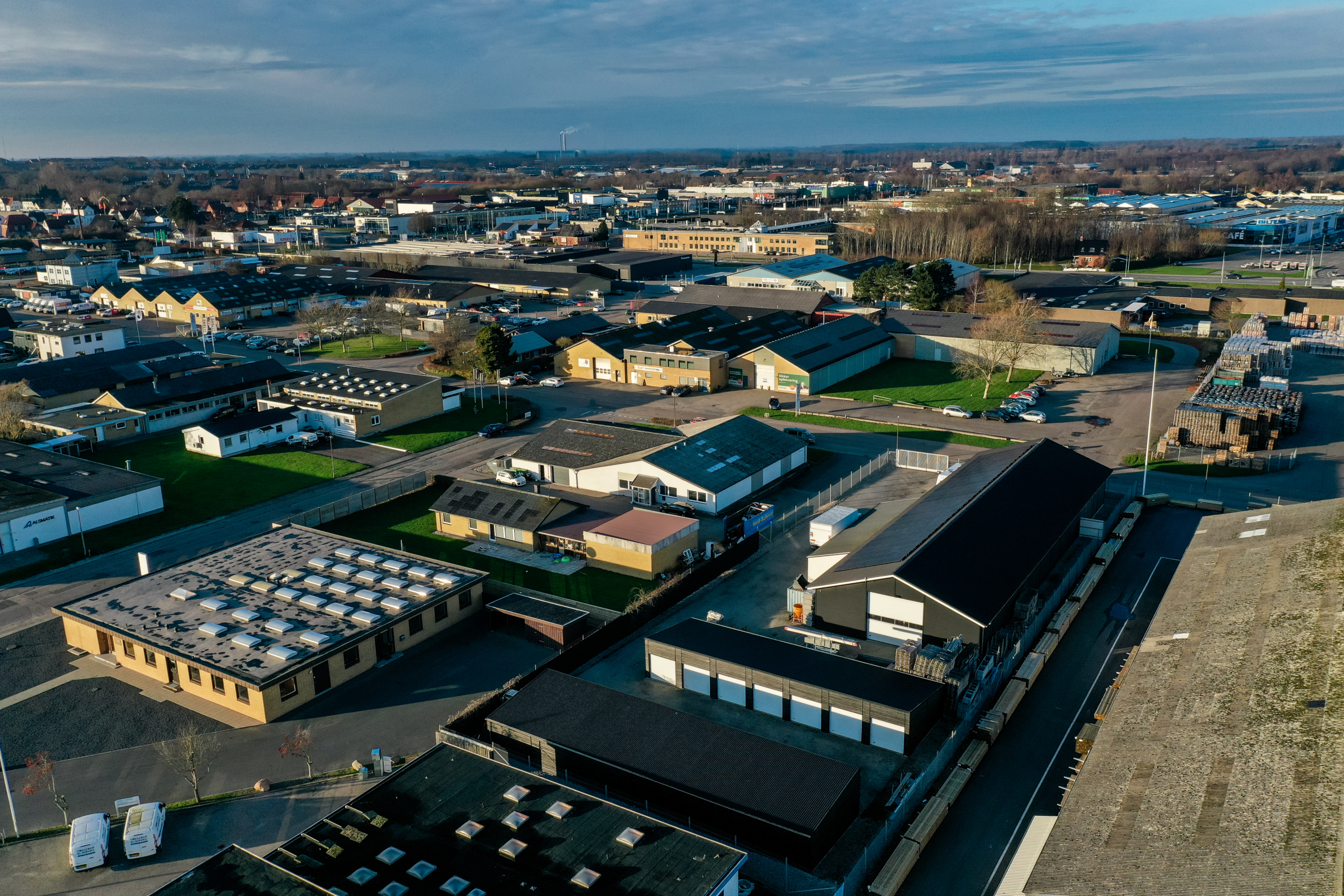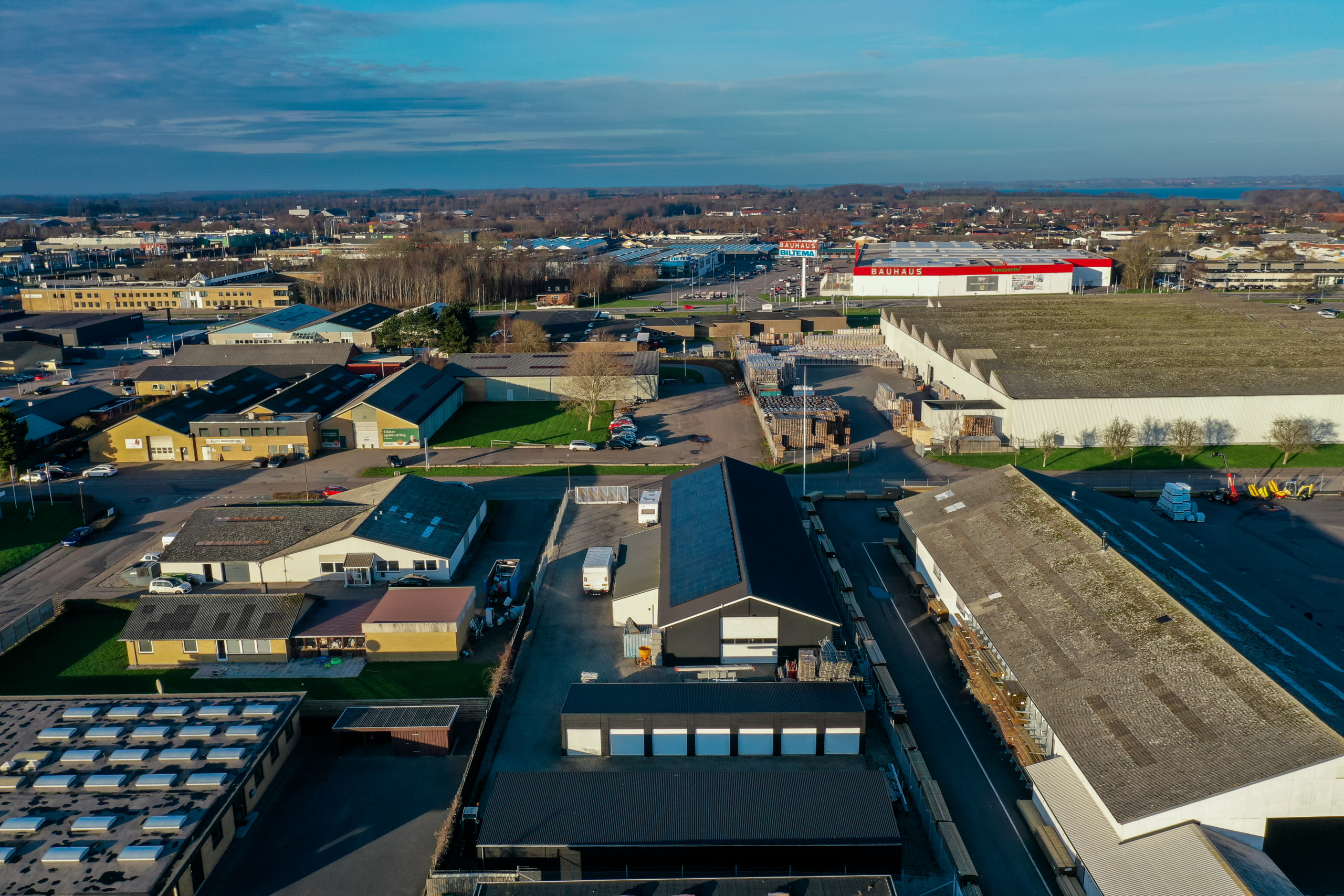 Området er roligt og præget af praktisk erhvervsaktivitet, hvor lastning, aflæsning og daglig drift kan foregå uden besvær. Indkøb, transport og servicetilbud ligger i umiddelbar nærhed, hvilket gør hverdagen let og effektiv.